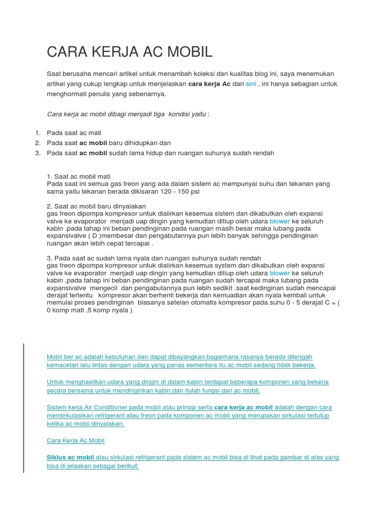 Doc Cara Kerja Sistem Ac Mobil Sinta Qomariyah Academia Edu