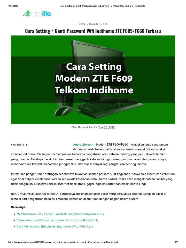 Cara Setting Ganti Password Wifi Indihome Zte F609 F660 Terbaru
