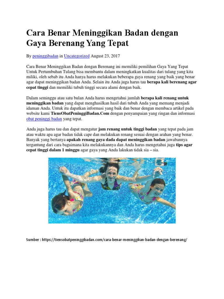 Berapa Kali Berenang Agar Cepat Tinggi