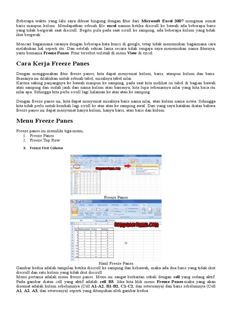 Cara Menggunakan Freeze Panes Doc